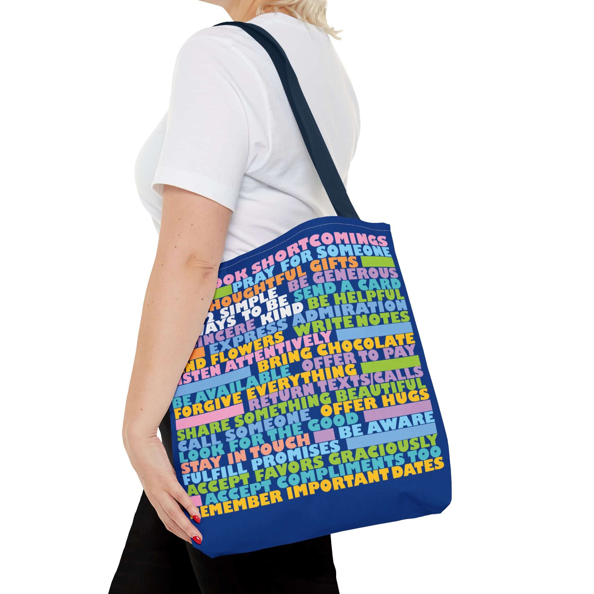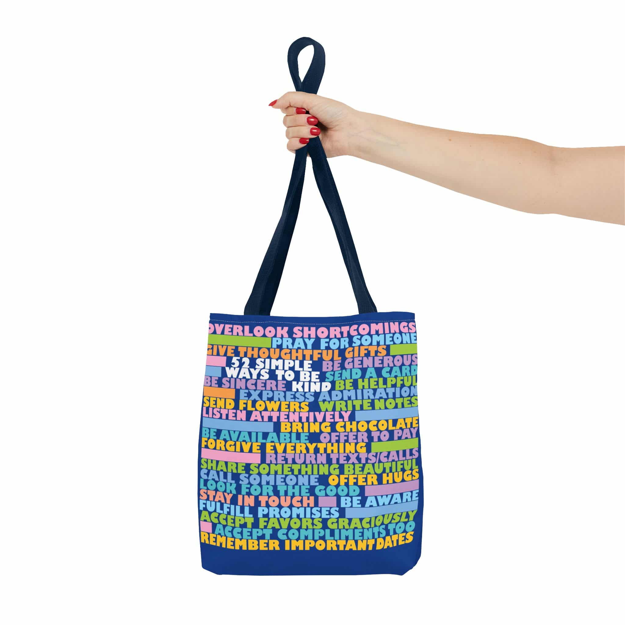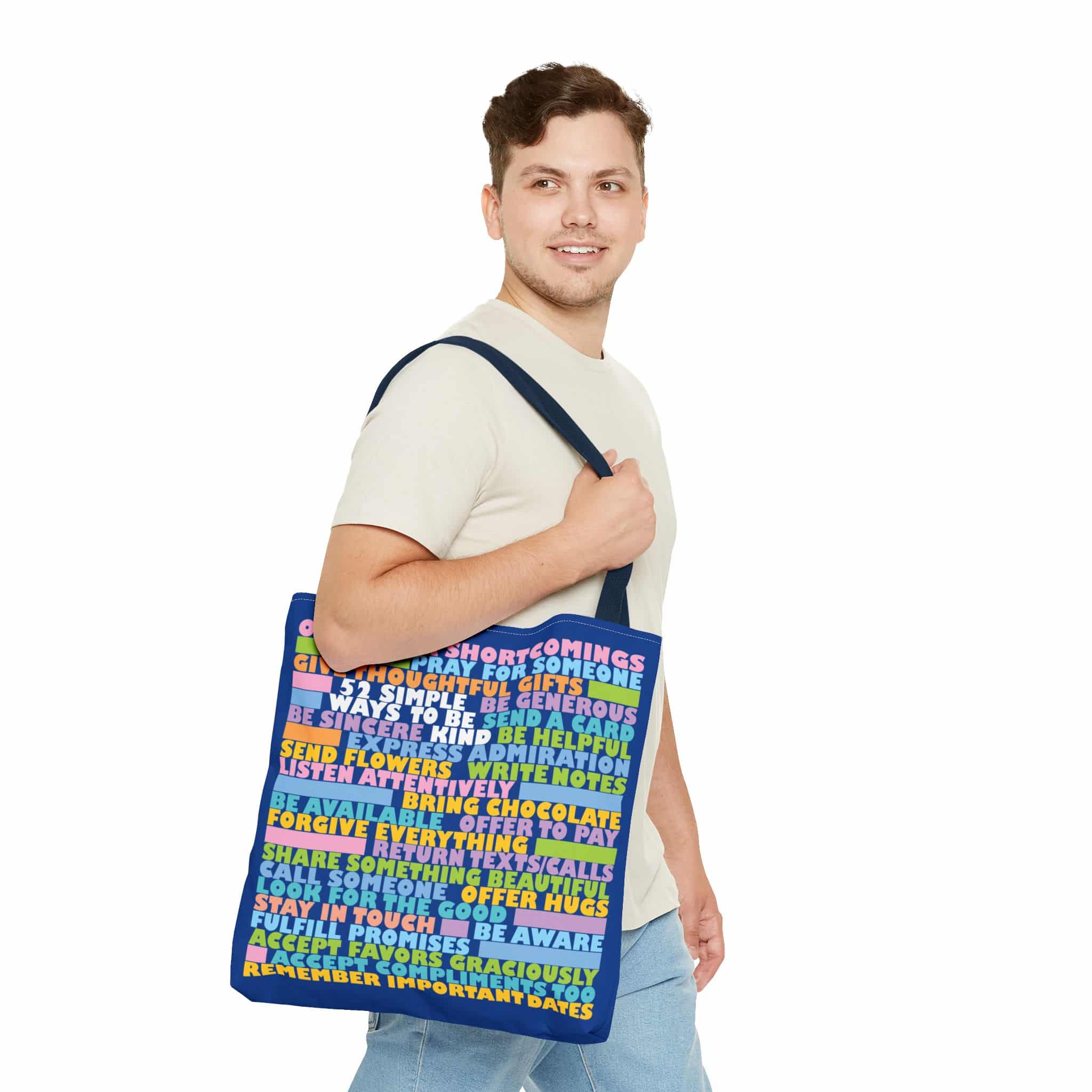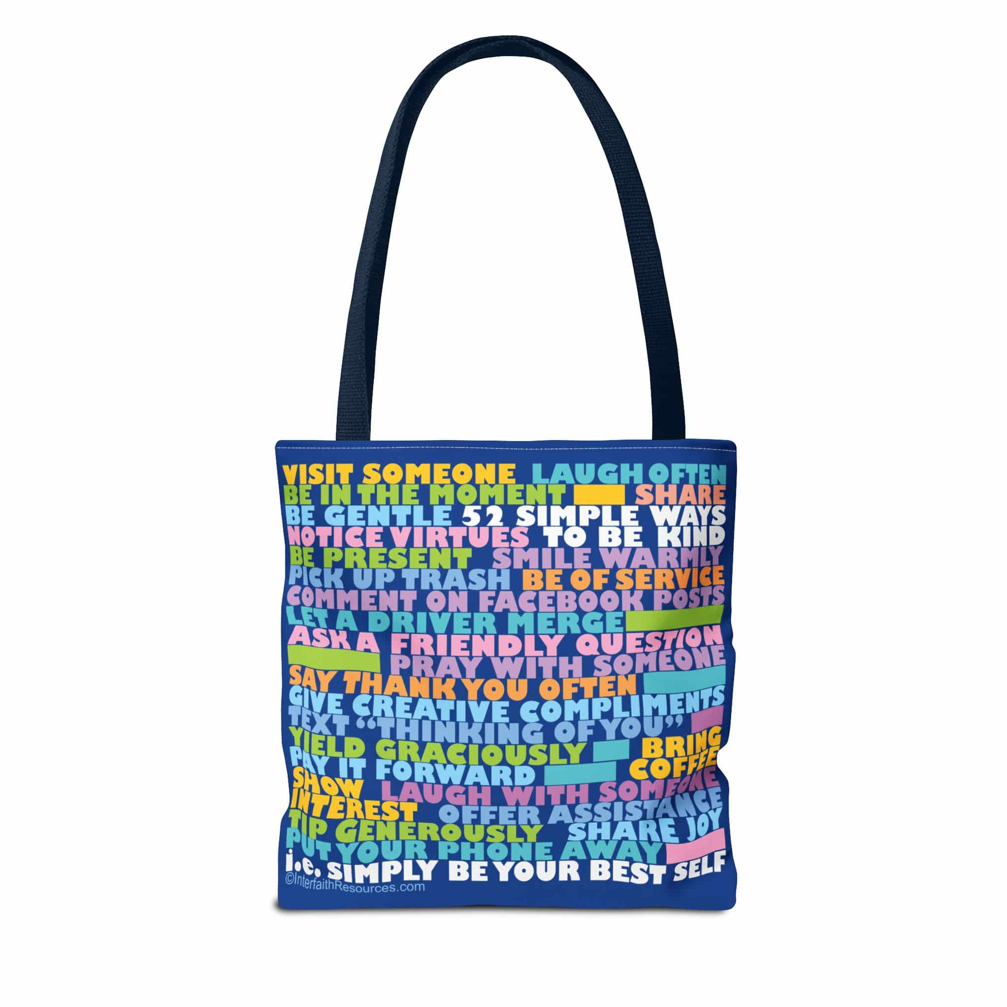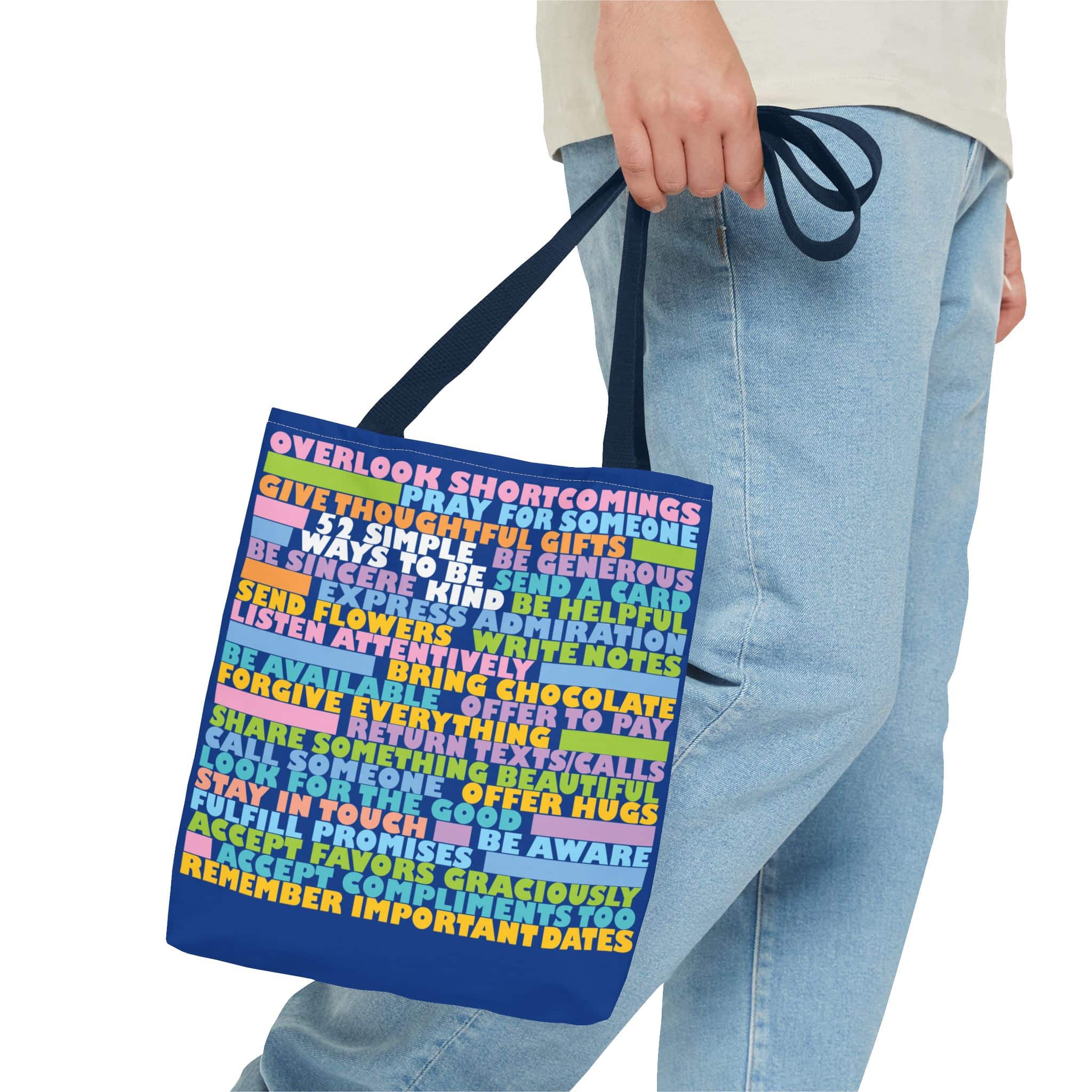 Everyone wants to be more kind, but it can be difficult to think of what you can do in any given moment. This handy tote bag will give you fifty-two ideas to think about, so when the opportunity arises, you will be ready to rise to the occasion. When you carry it, not only will you let people know that you are dedicated to becoming more kind, but the ideas they see may inspire them to be kinder too. It is a simple way to make the world a better place.