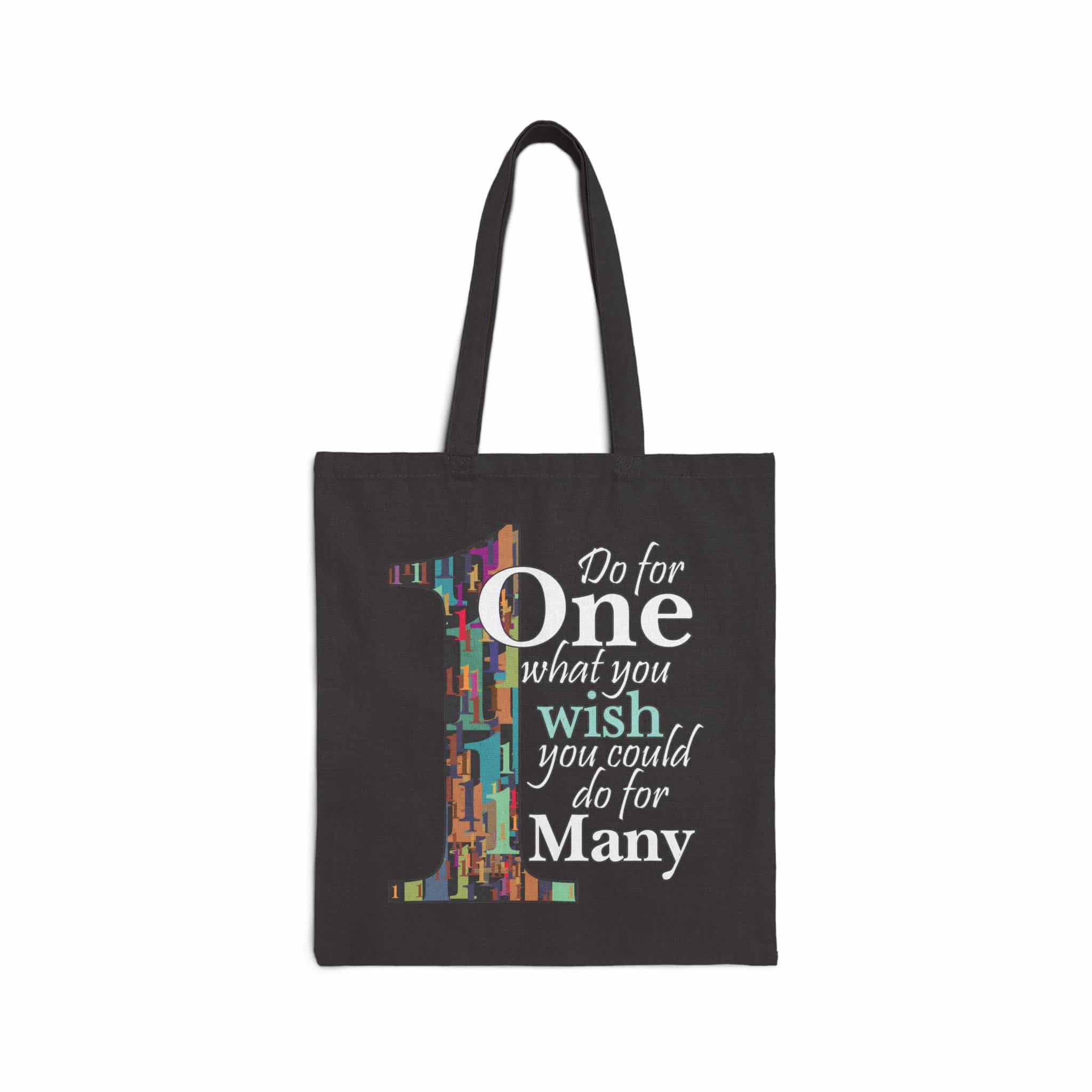 So I did, and then I turned it into a tote bag too. The large number 1 is made of dozens of multi-colored ones to suggest that the MANY is made up of lots of single individuals, and that helping ONE individual is a way of helping many.