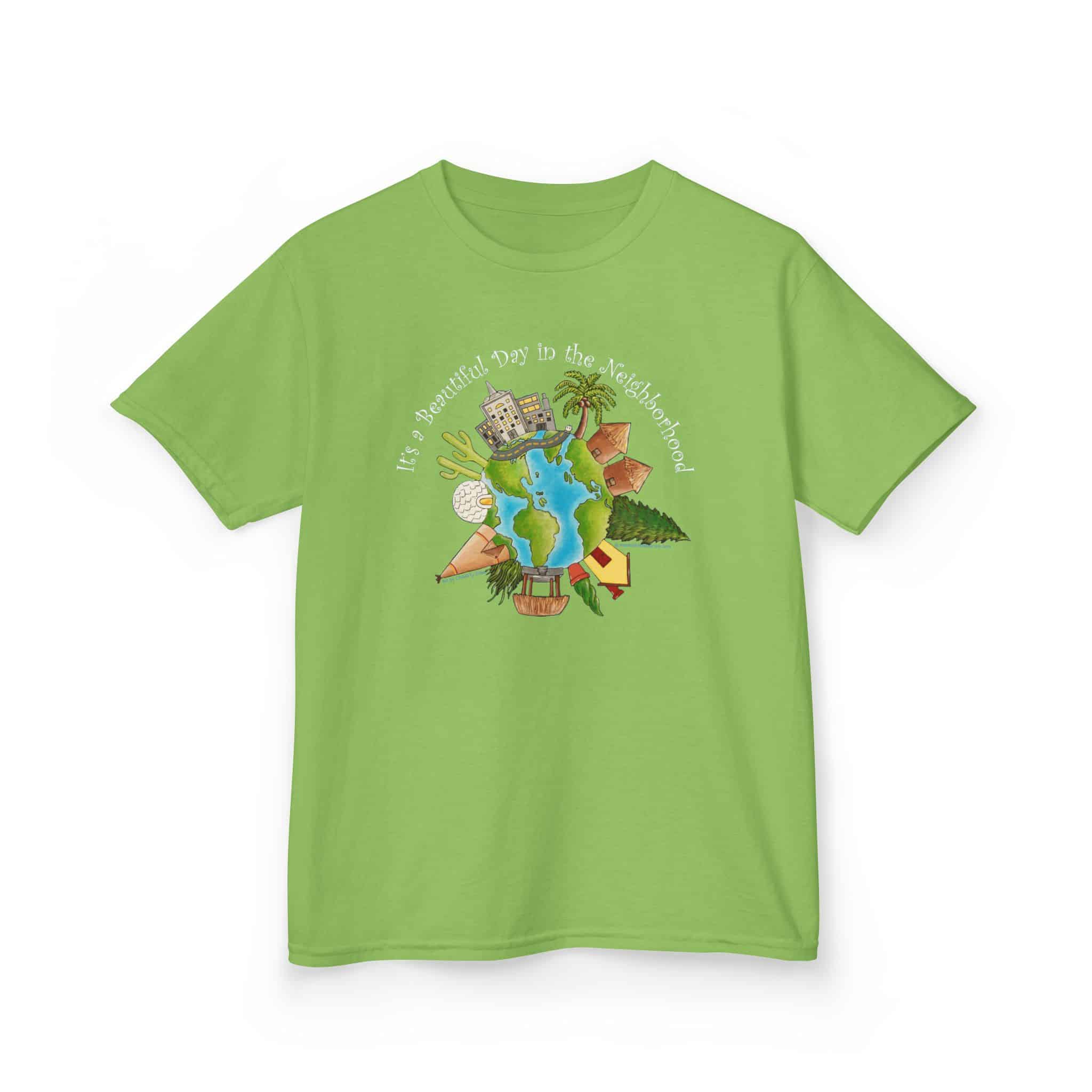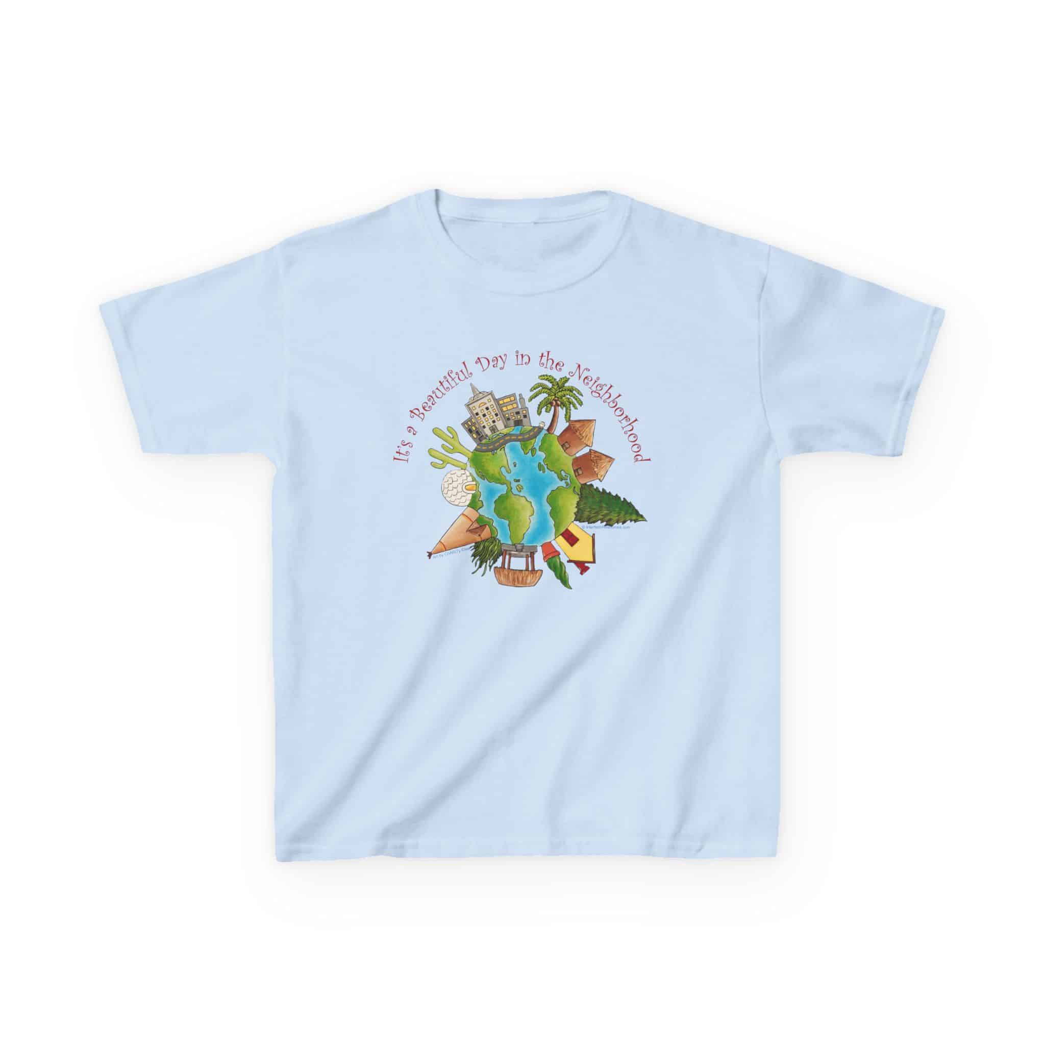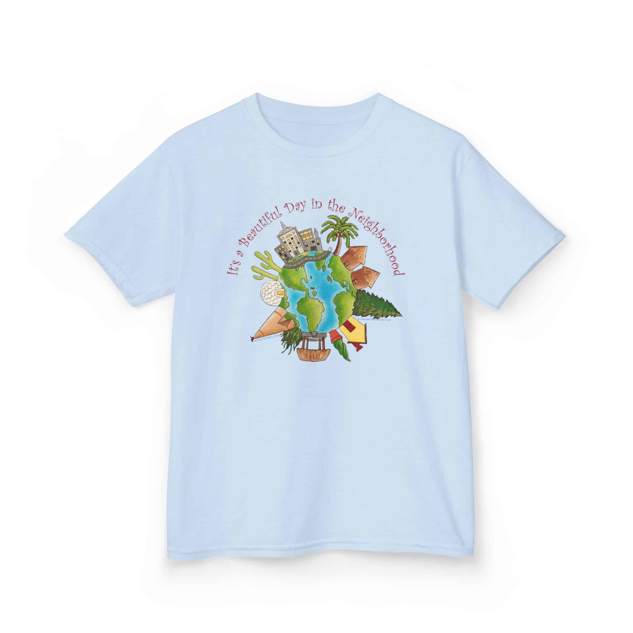 This charming design, using artwork by Charity Elise and a friendly phrase made popular by Mr. Rogers is a cute and subtle way of reminding people that the whole world is one big neighborhood. It combines the sentiments of our “Love Your Neighbor” design with our “World Citizen” and “Earth One Home” designs but with a sweeter, softer approach. It makes a great gift for people who don’t want to make big political statements with their clothing, but like happy, positive designs.