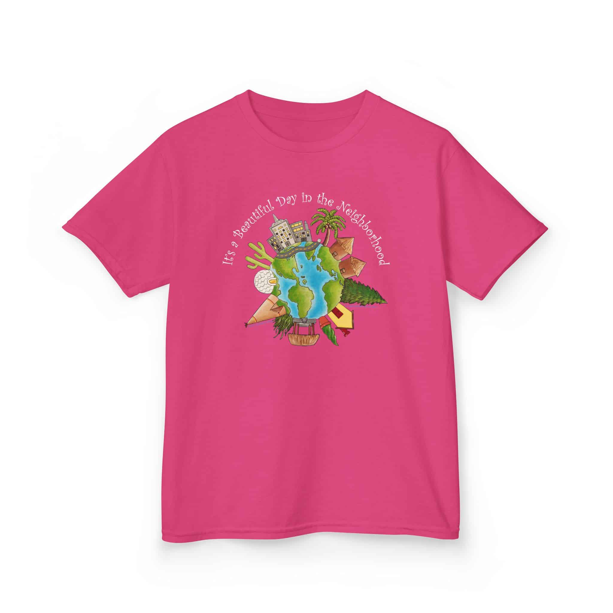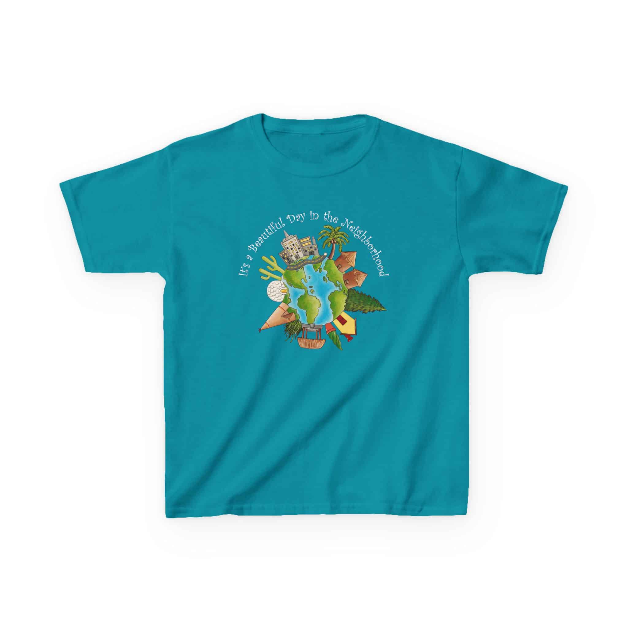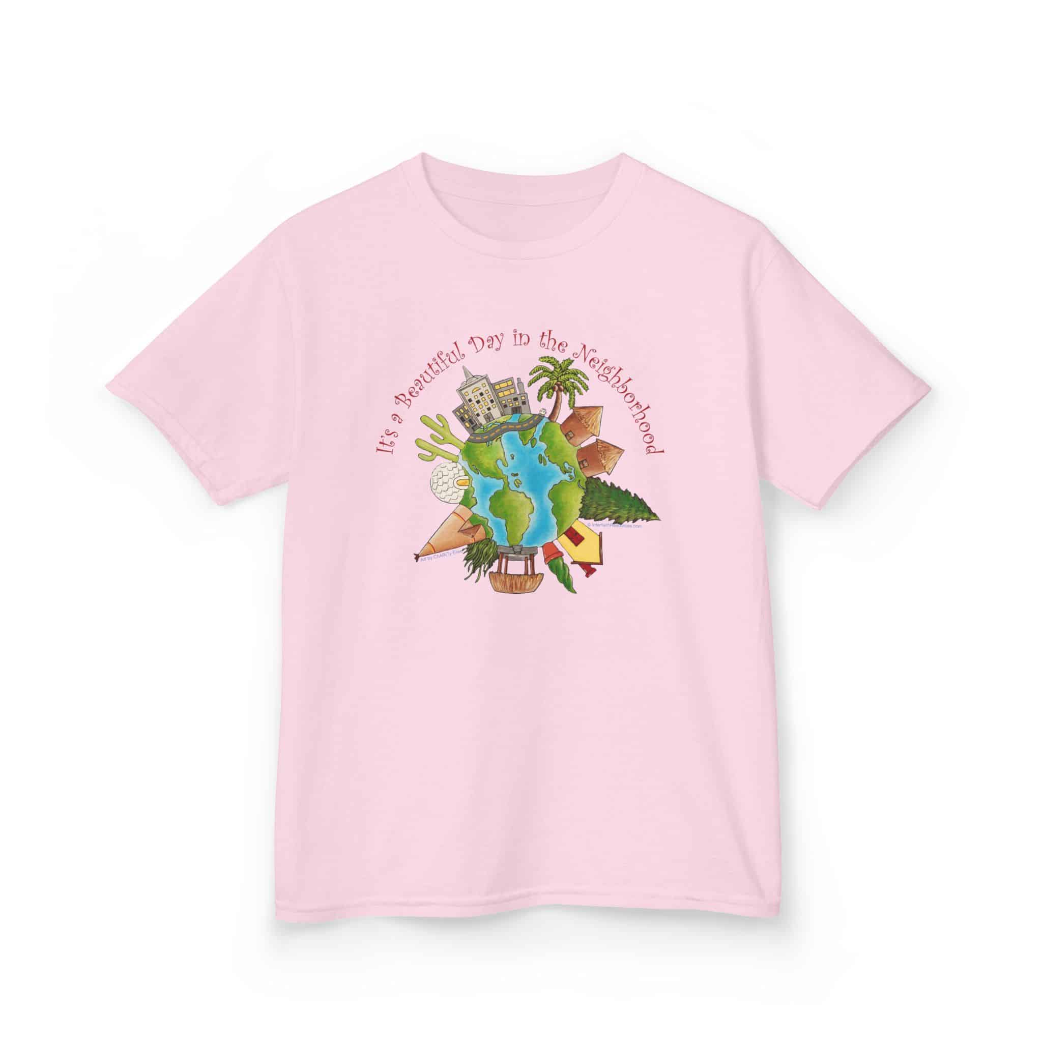 This charming design, using artwork by Charity Elise and a friendly phrase made popular by Mr. Rogers is a cute and subtle way of reminding people that the whole world is one big neighborhood. It combines the sentiments of our “Love Your Neighbor” design with our “World Citizen” and “Earth One Home” designs but with a sweeter, softer approach. It makes a great gift for people who don’t want to make big political statements with their clothing, but like happy, positive designs.