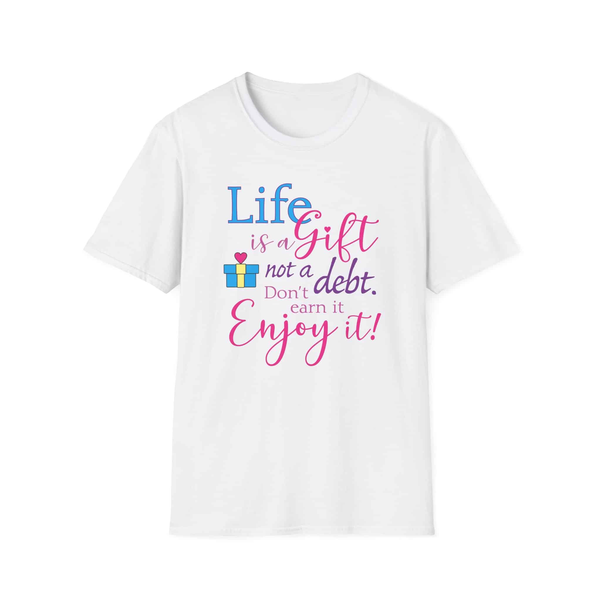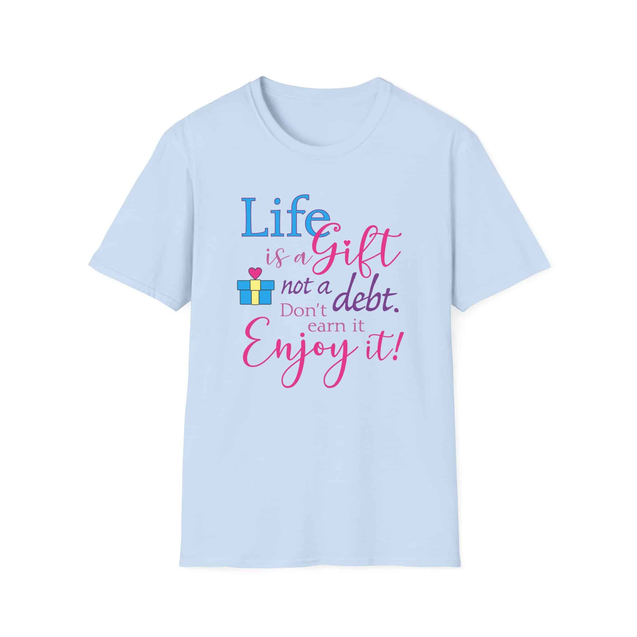 Wear this shirt and spread the word that life is for joy, not guilt; for happiness, not self-abasement.