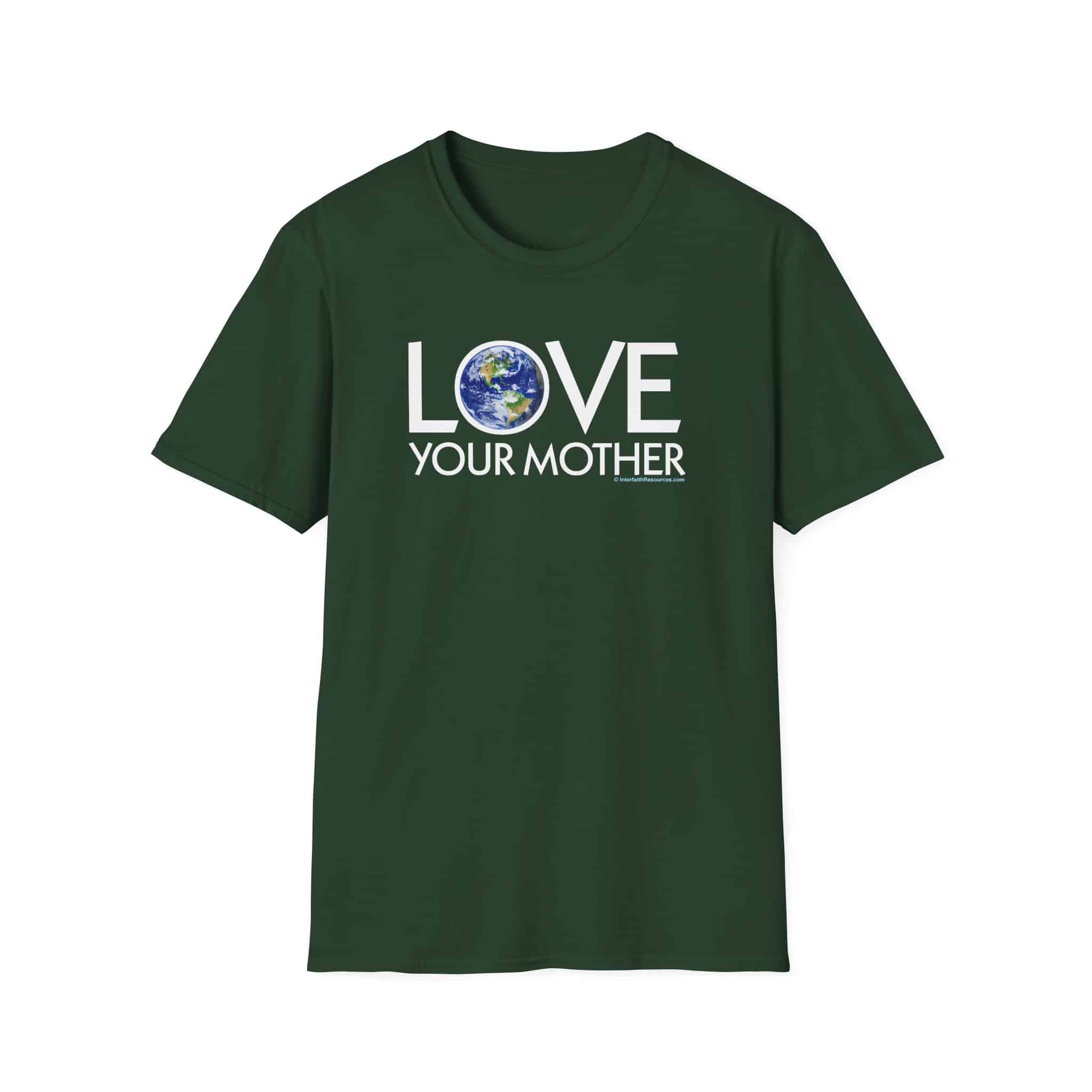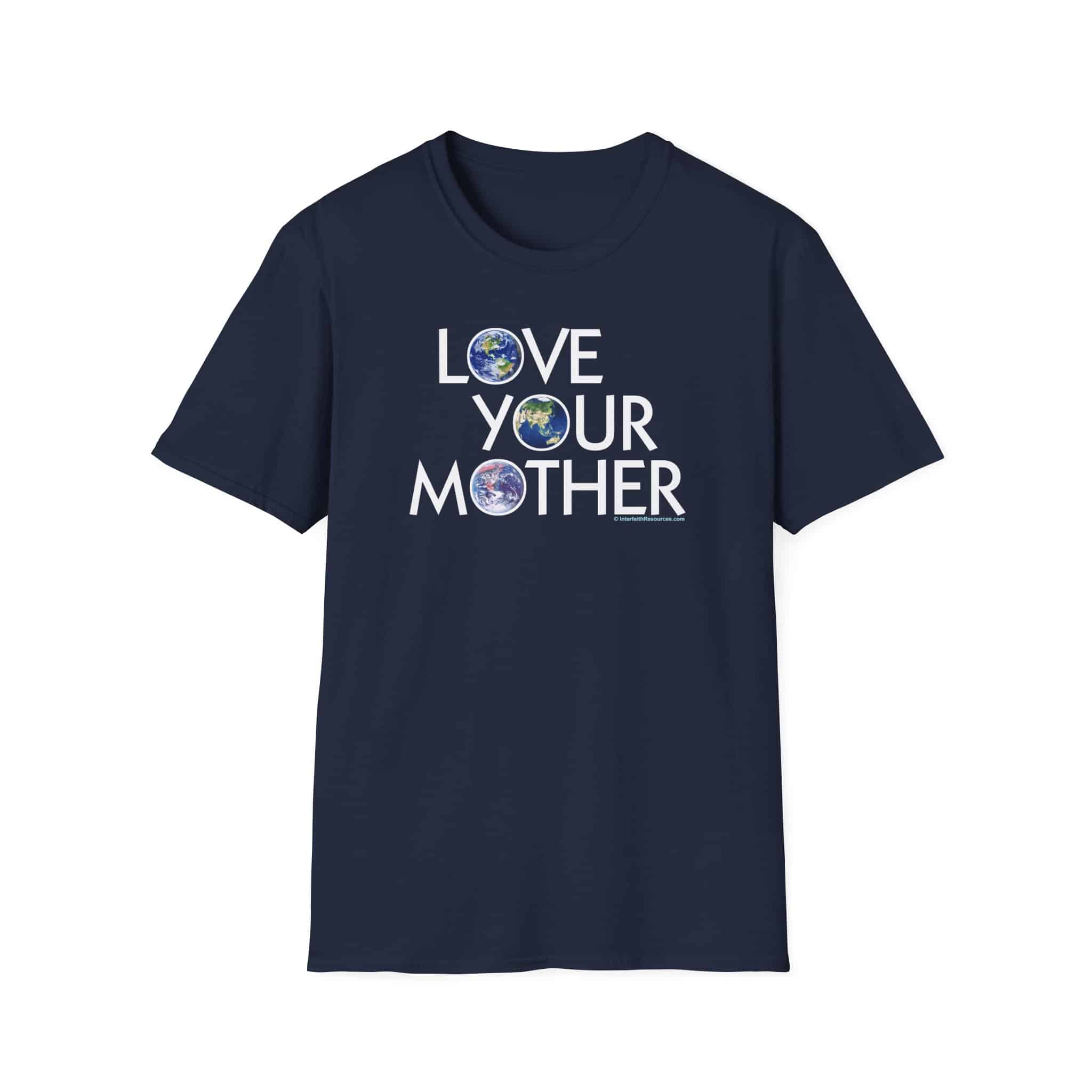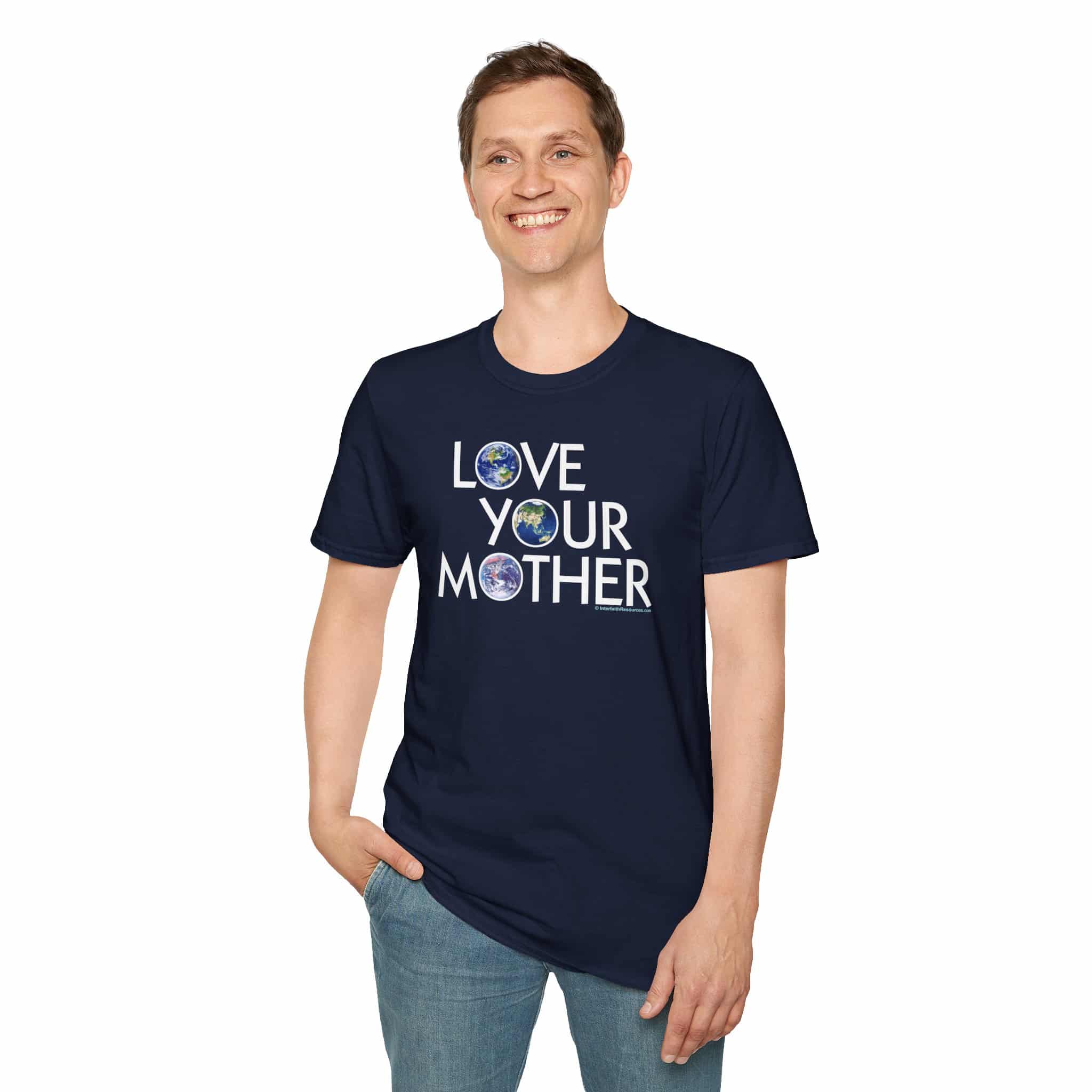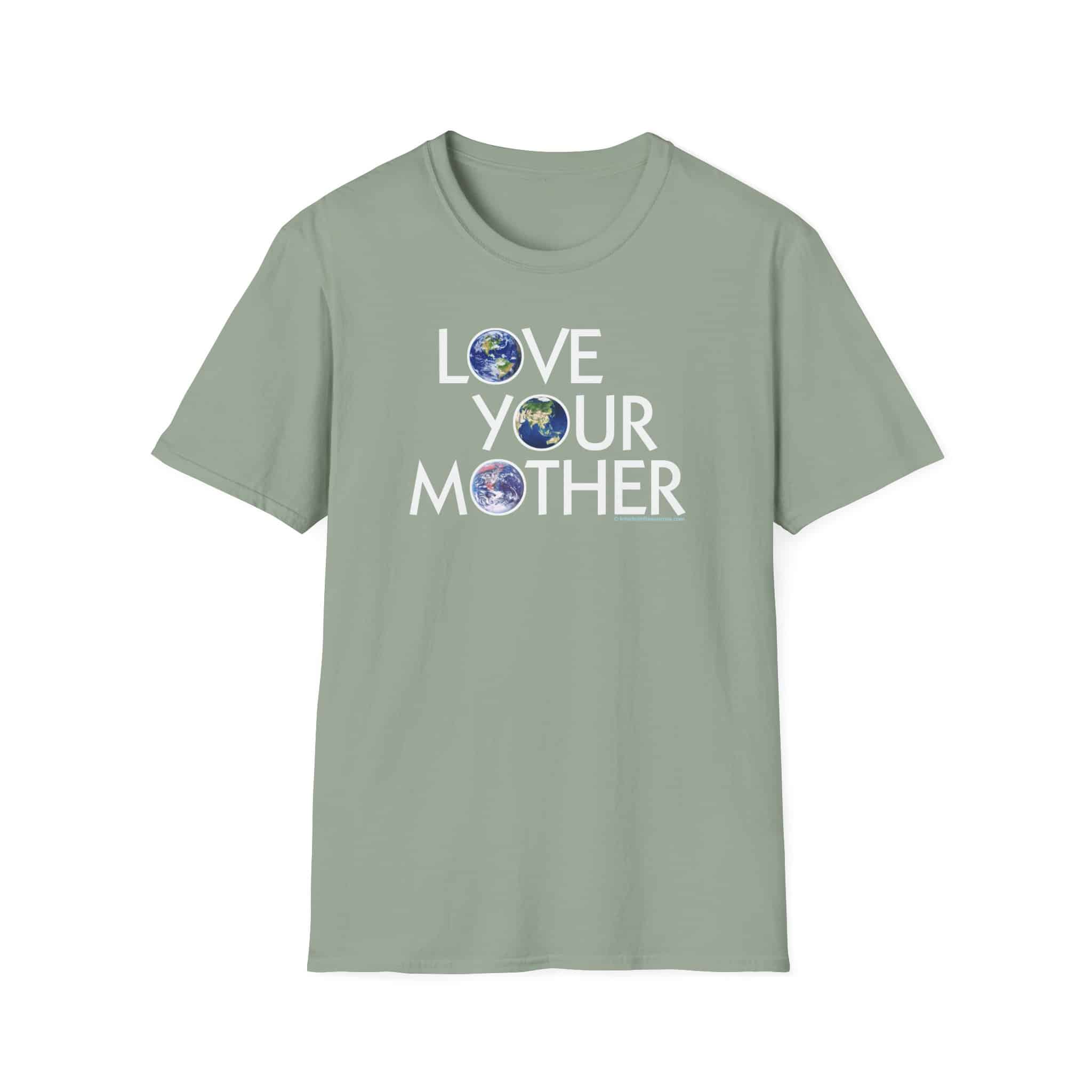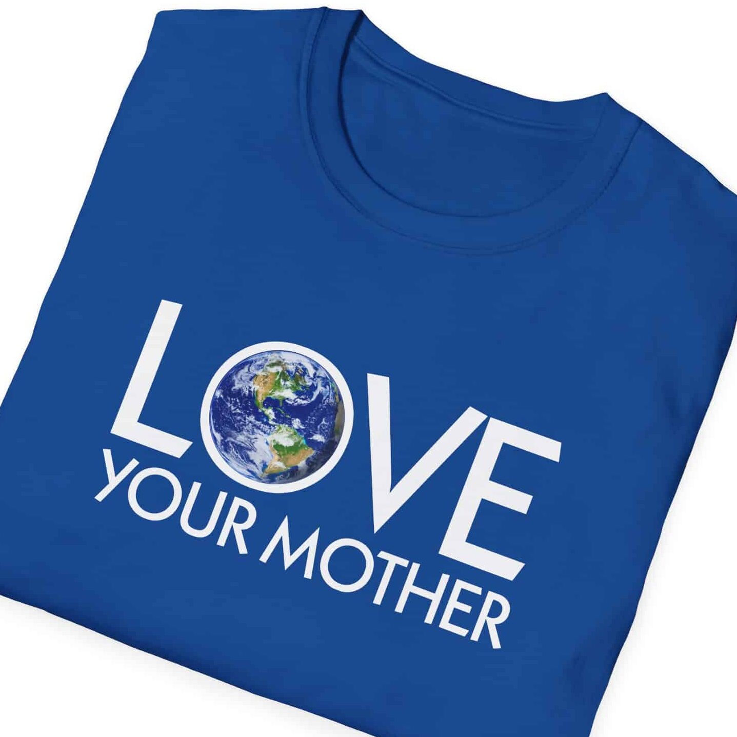 There are dozens of “Love Your Mother” designs out there, but I hope you will consider wearing one of the two I’ve designed. The use of the full-color photograph of the earth really “brings home” the fact that we only have one planet. We are all in this together, and learning to love the earth is something that can potentially unite us.