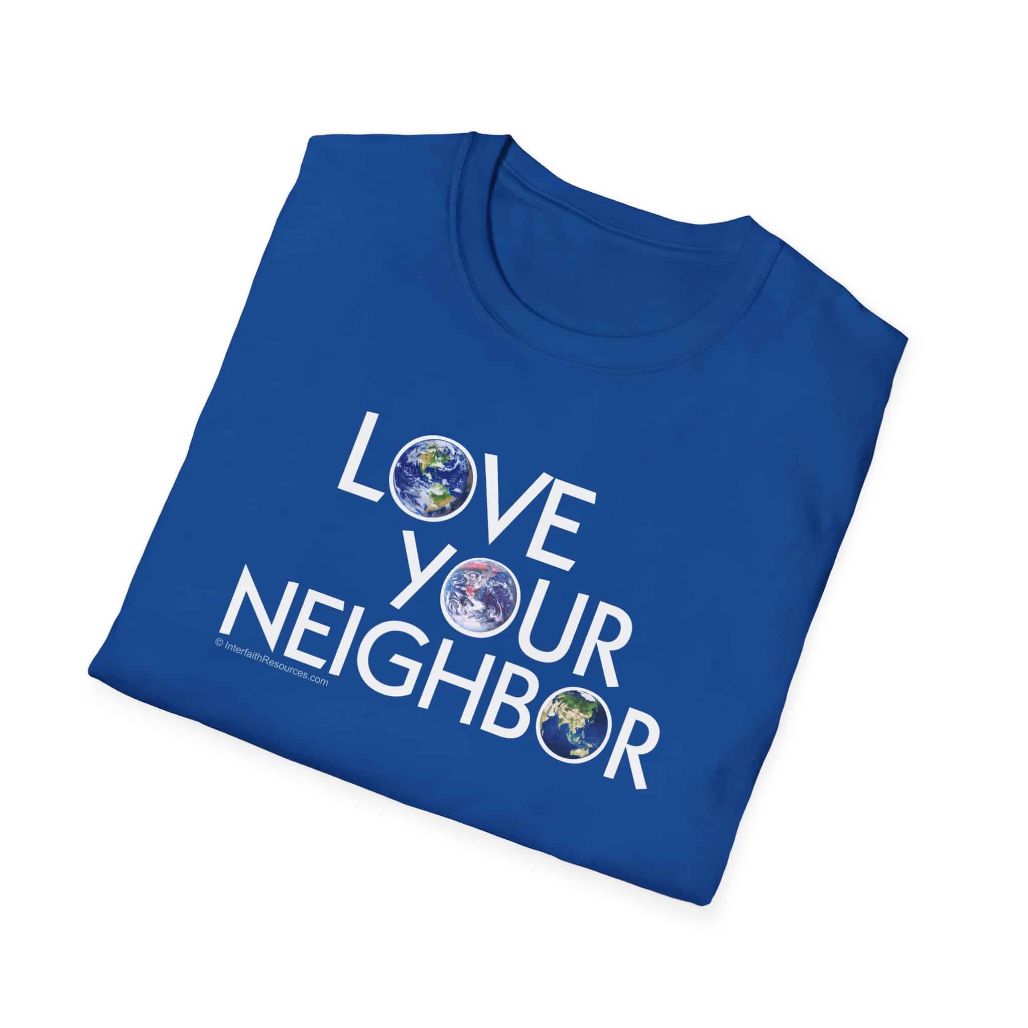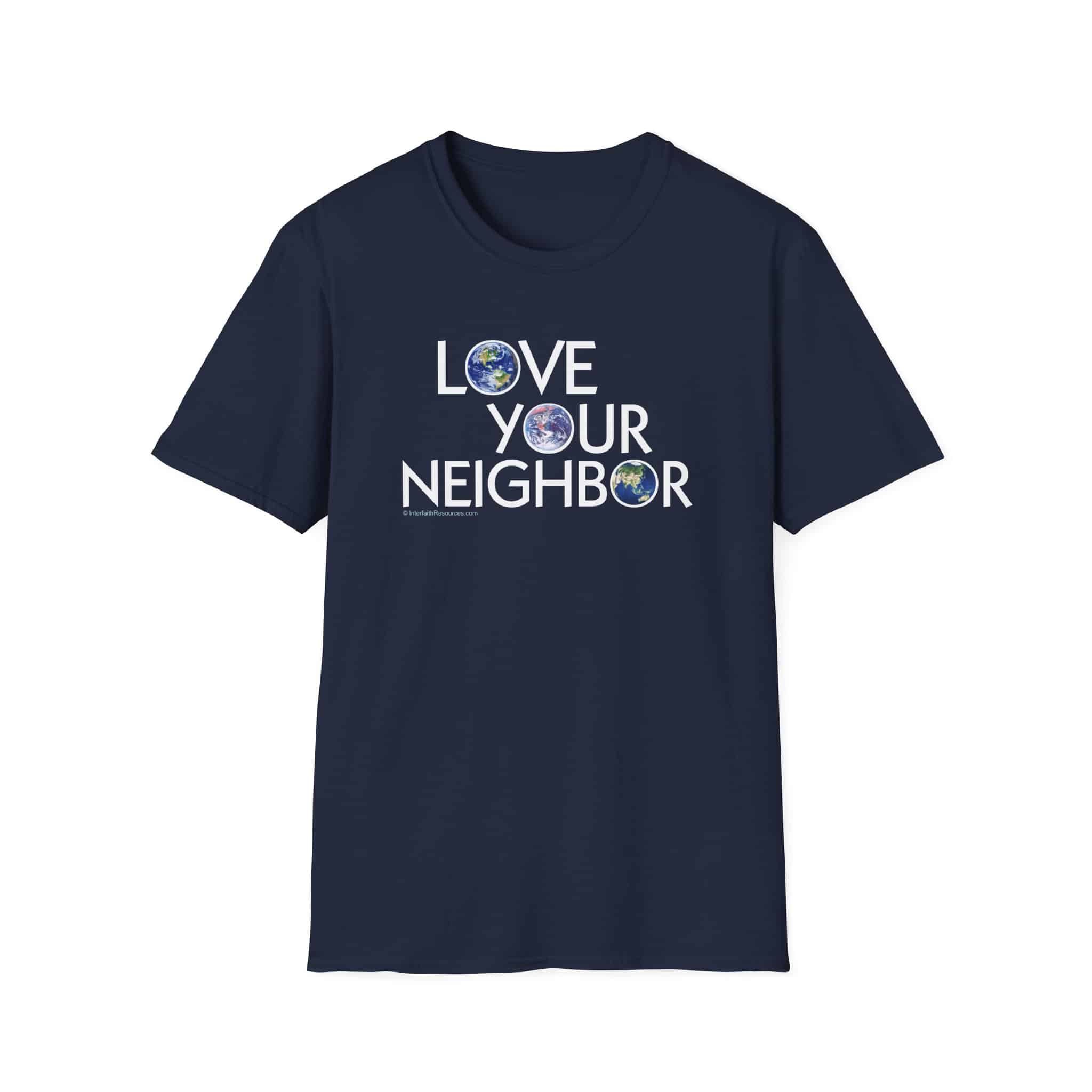 There seems to be some confusion as to who is meant by the word “neighbor.” This design clears up any doubt by including a picture of the entire globe within the “Os” of the words.