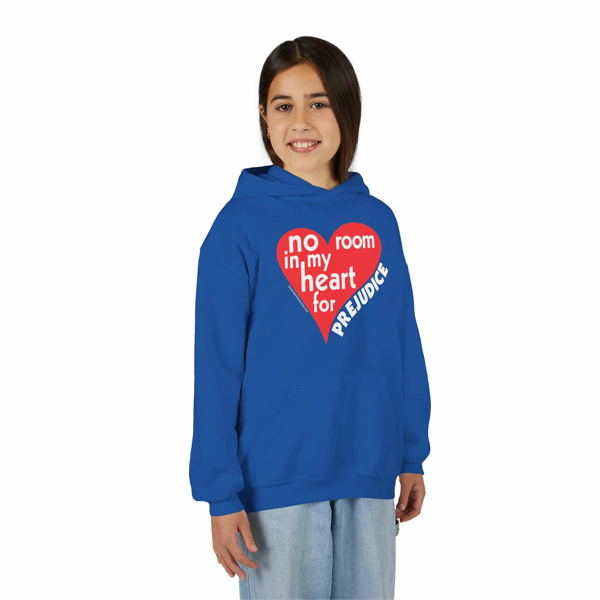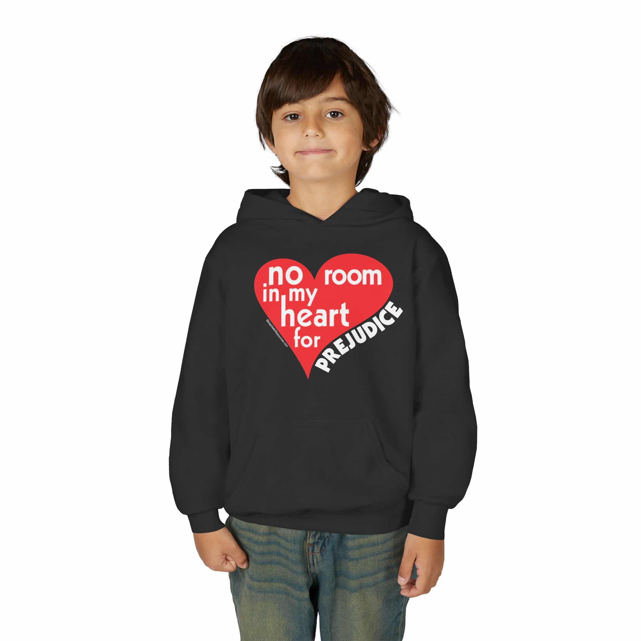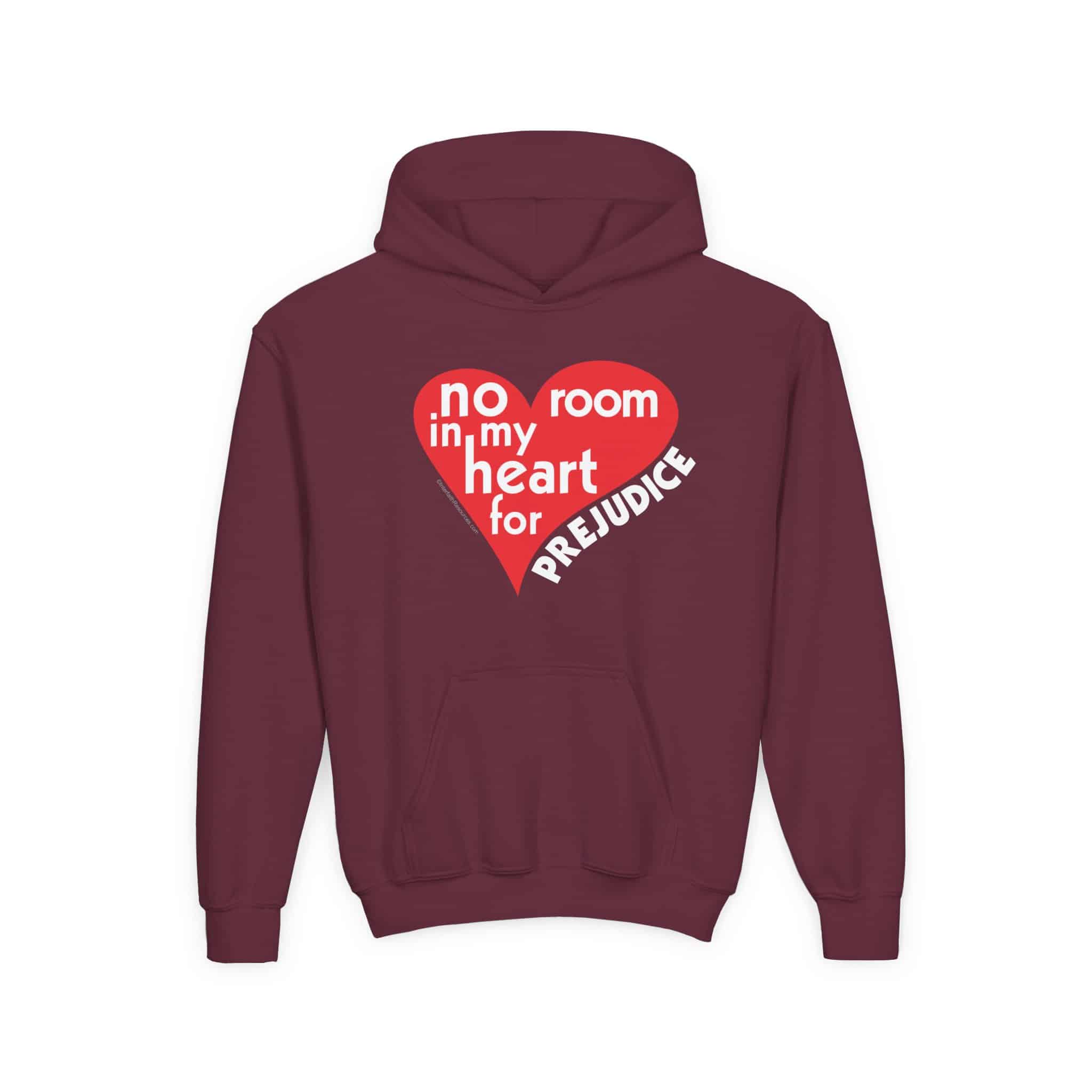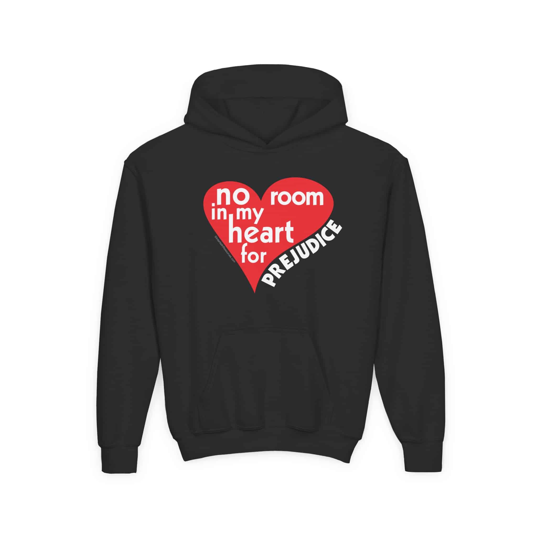 No Room for Prejudice has been our most popular design for thirty years, but this is the first time we’ve been able to offer it on a kid’s hoodie. A hoodie seems like an appropriate piece of attire to promote racial harmony.