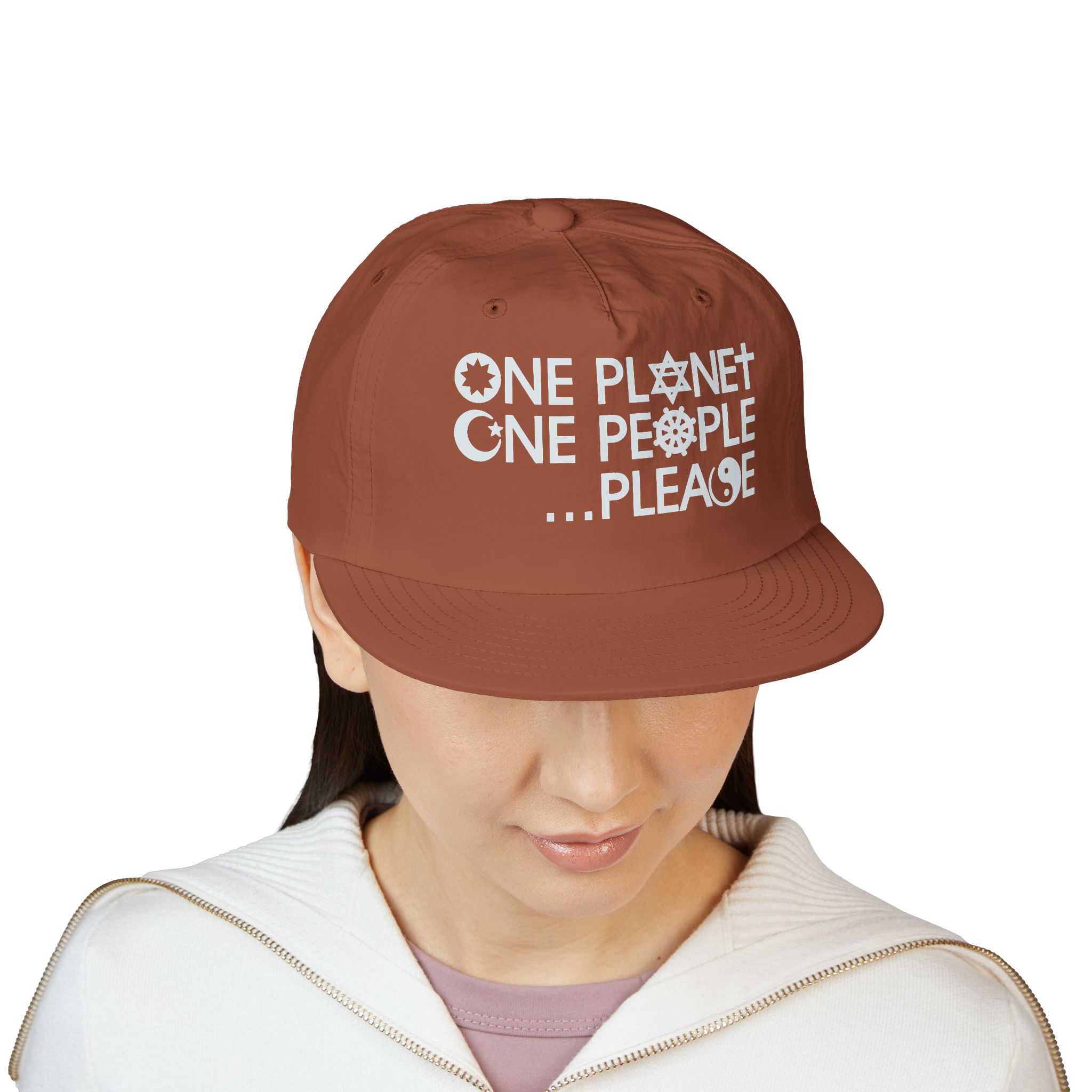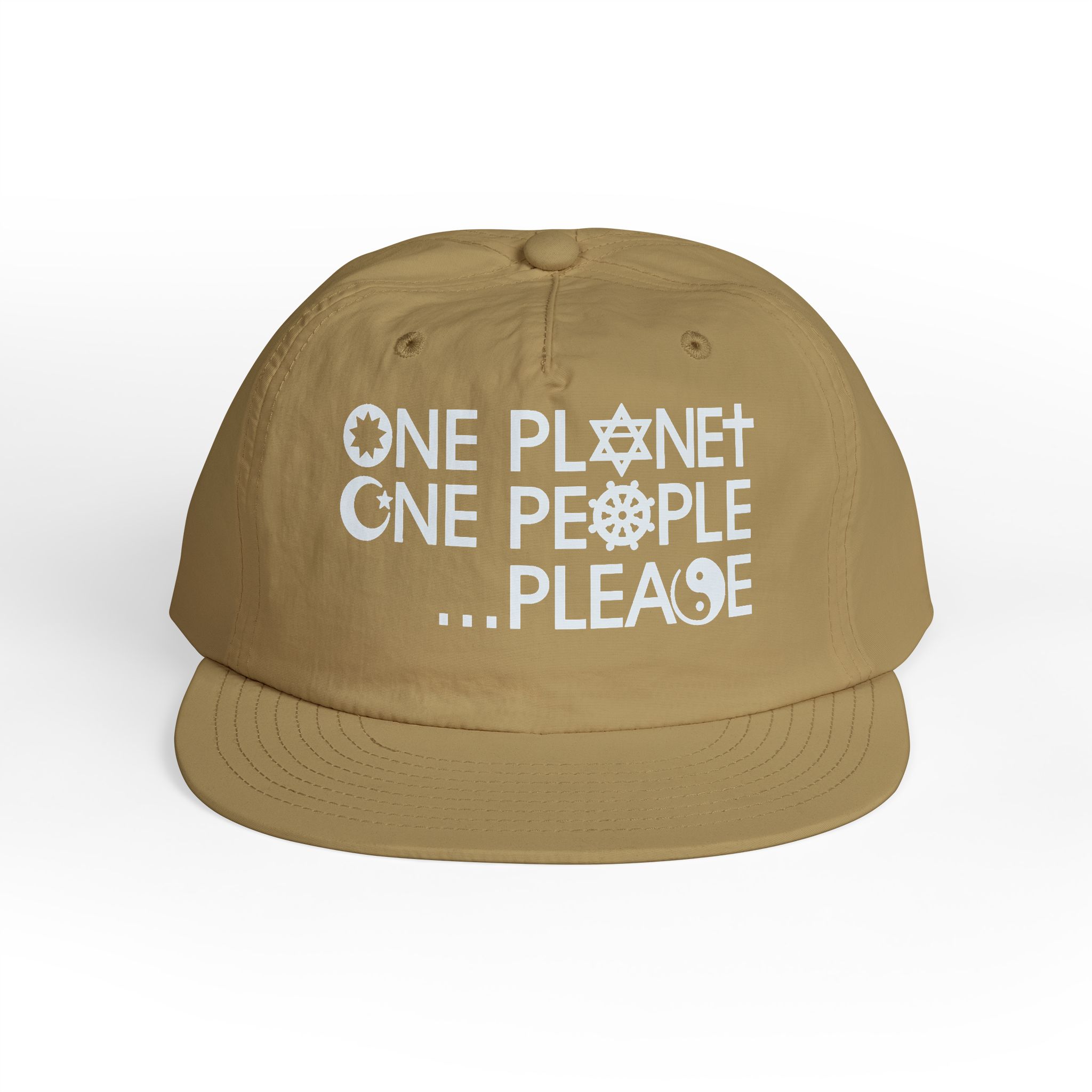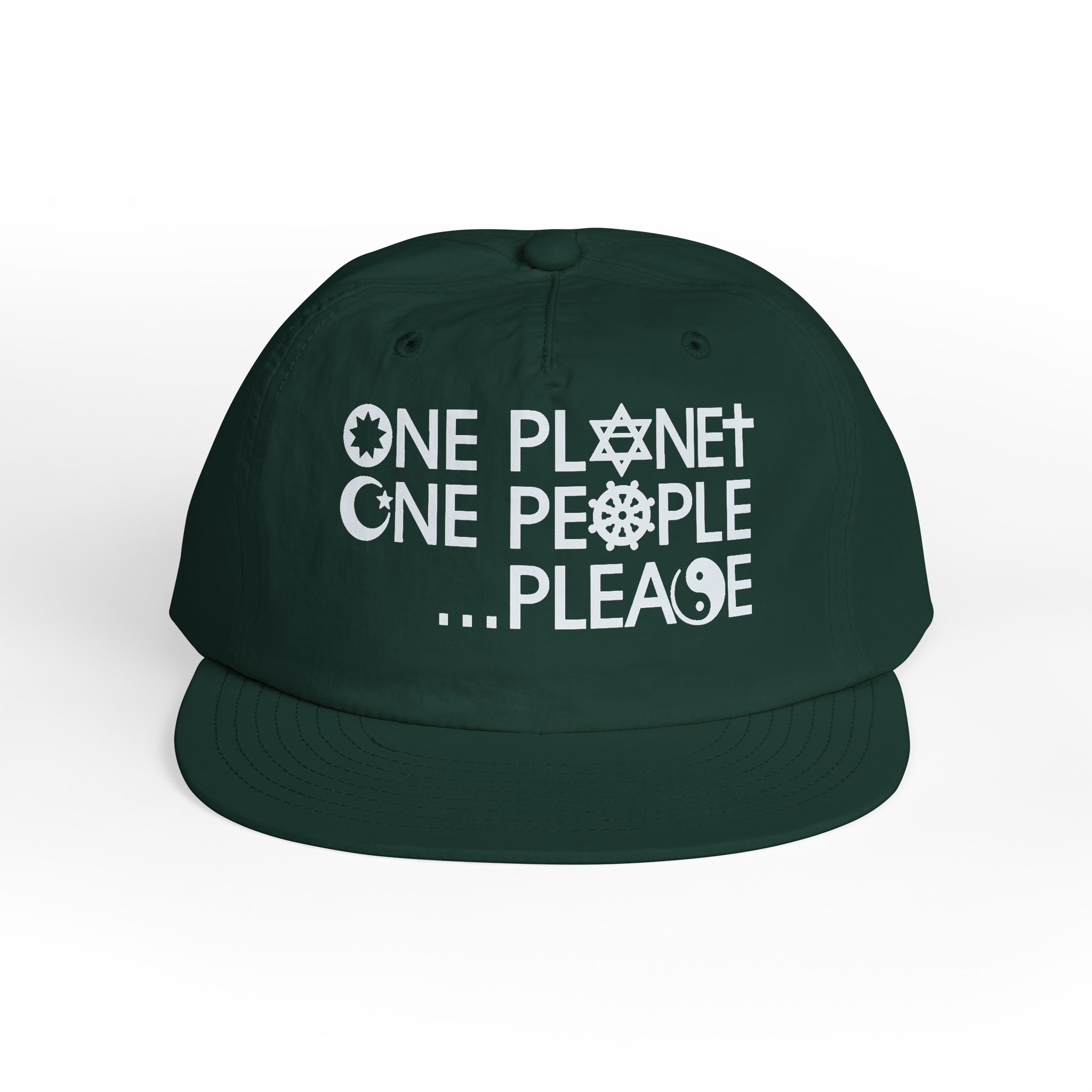 A lightweight cap with a heavy message. By integrating several religious symbols into the design, it takes on an even broader message of religious harmony as well as racial and cultural harmony.