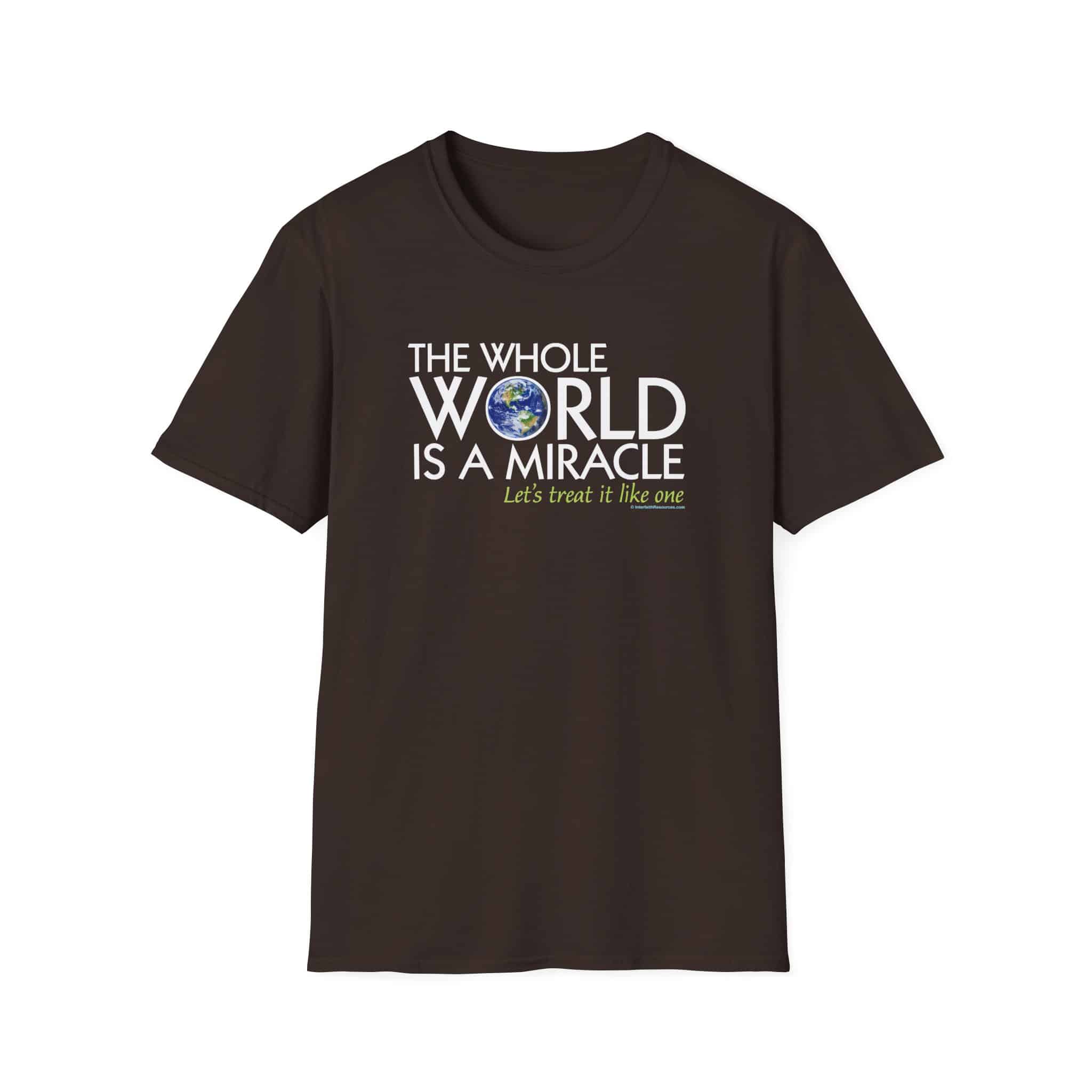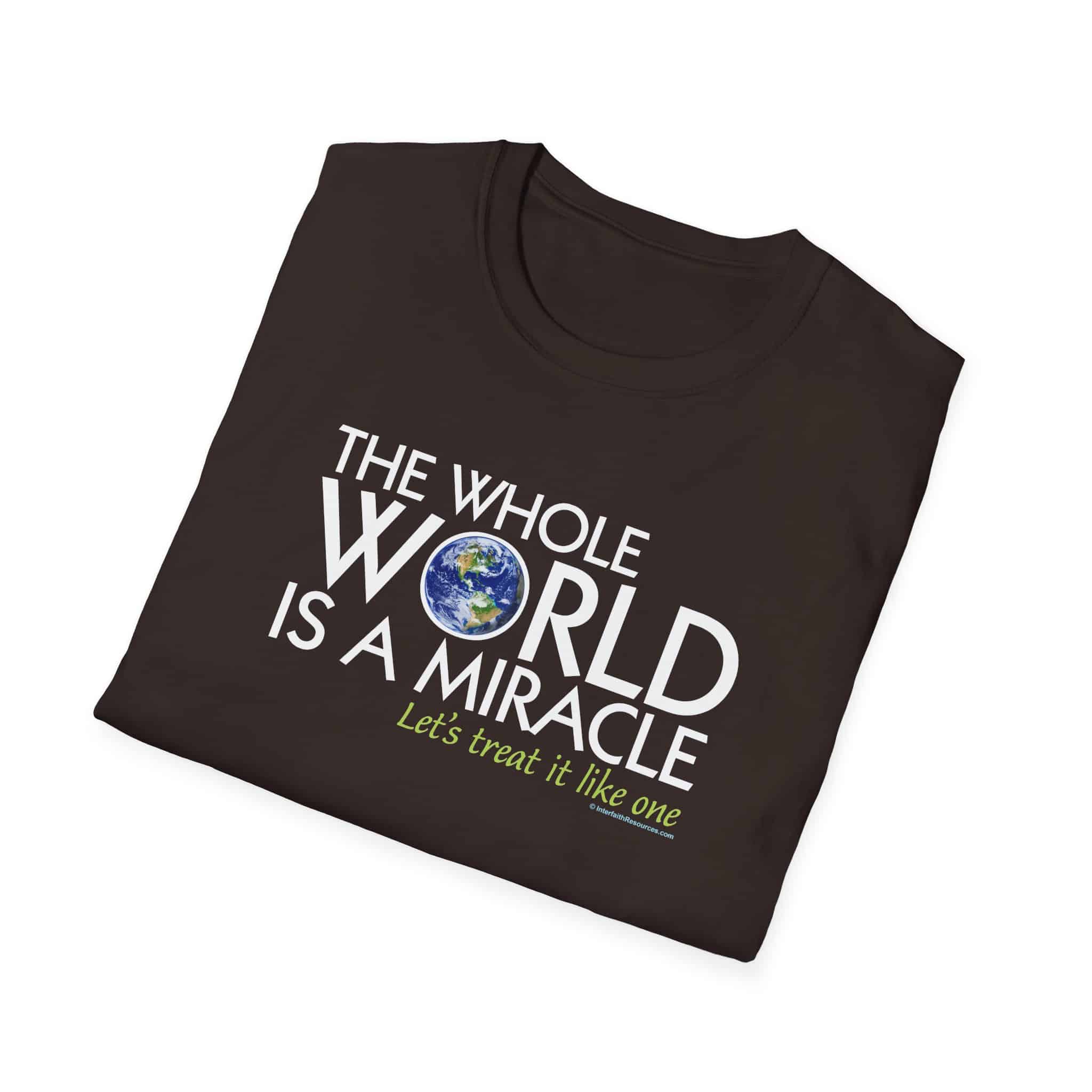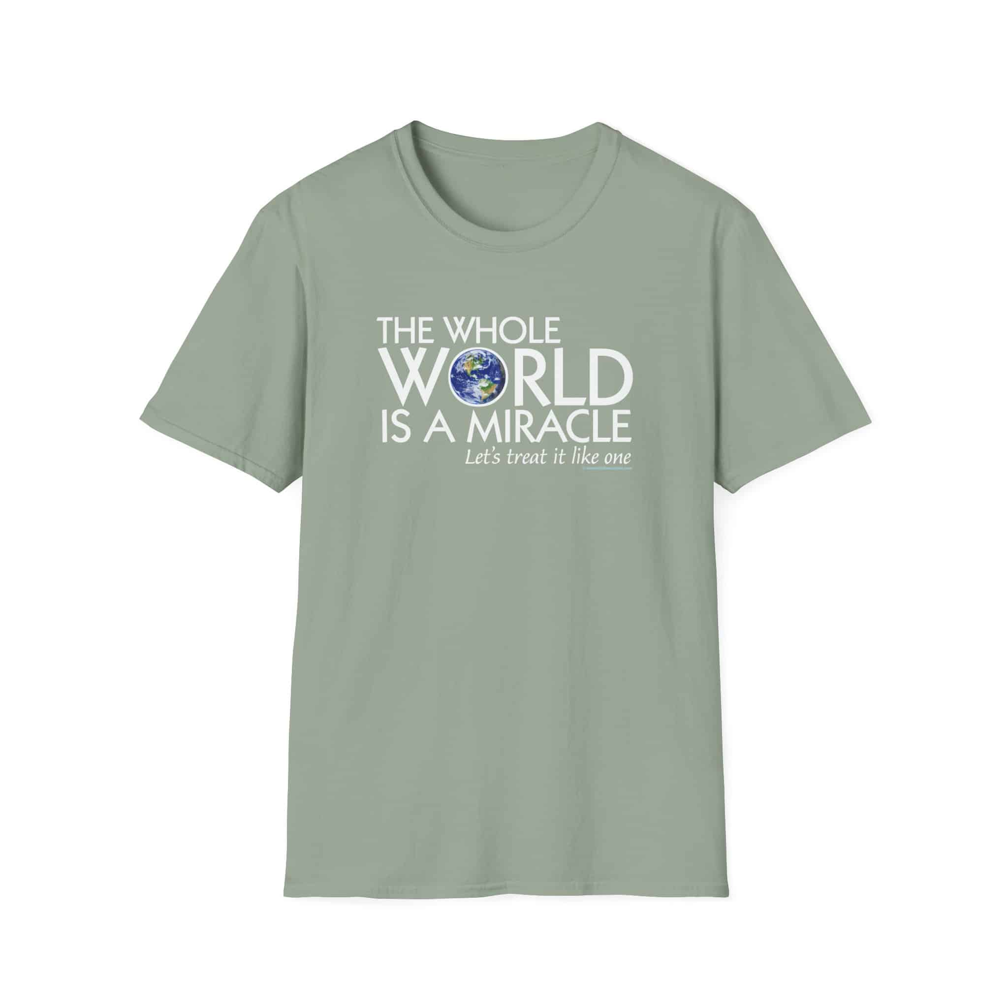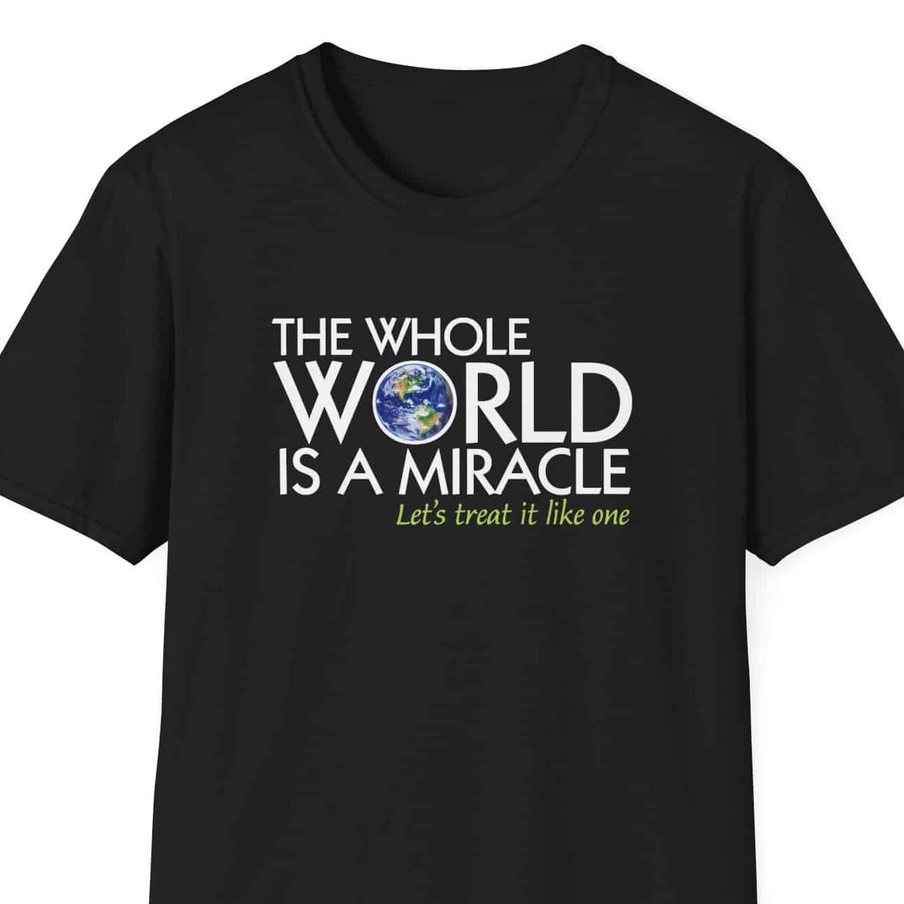 This design adds a spiritual slant to the principle that we should take care of the planet. How would we behave differently – towards each other and towards the planet if we saw it all as one huge and amazing miracle? The picture of the earth in the “O” points towards protecting nature, but the idea that life is a miracle points us all towards the transcendent and lifts our spirits higher.