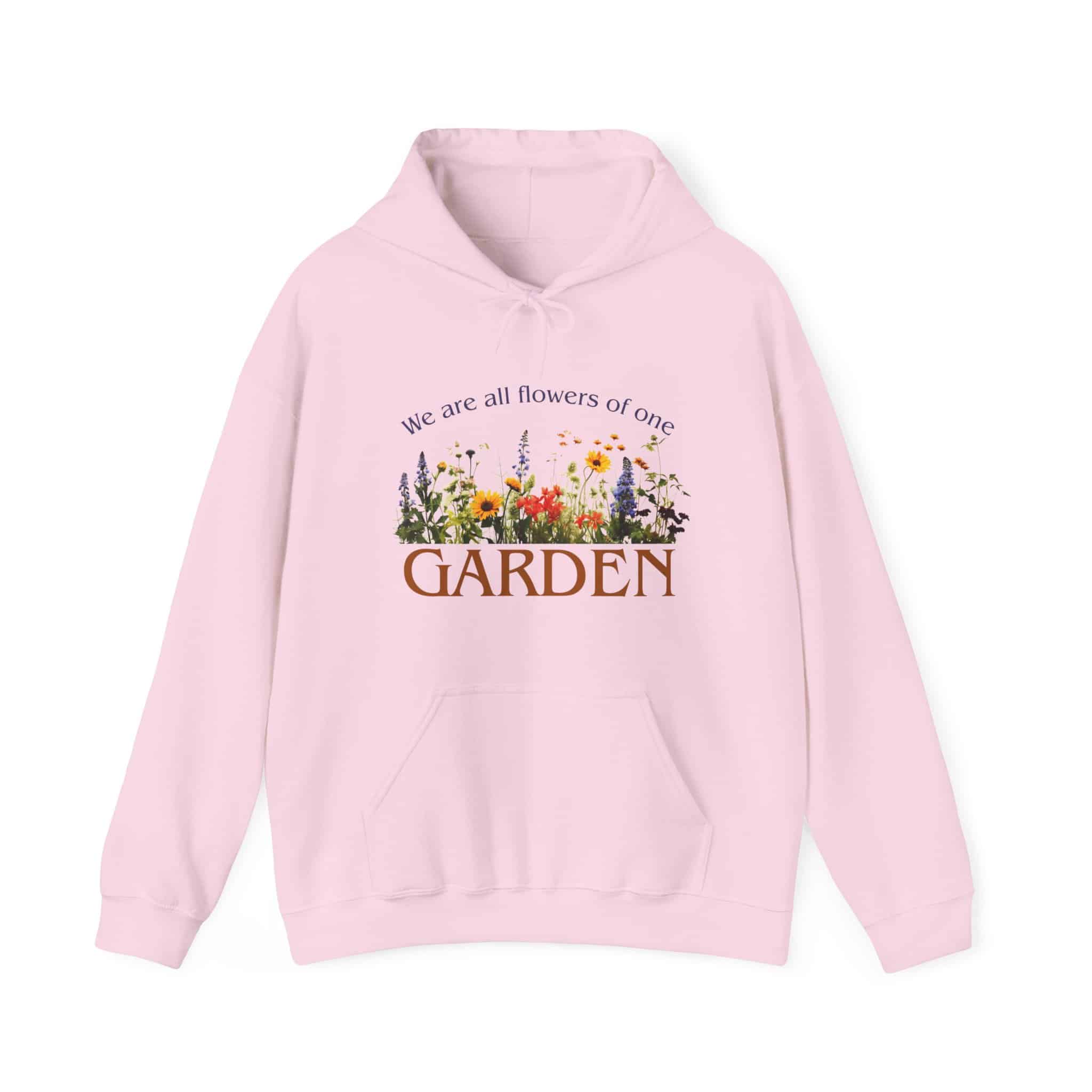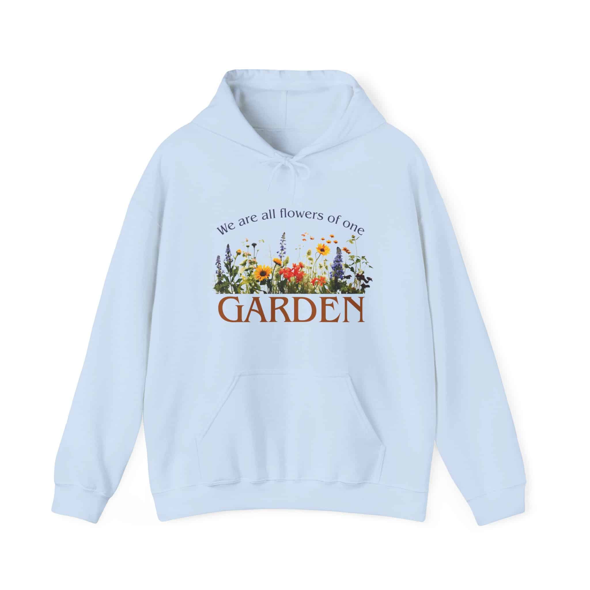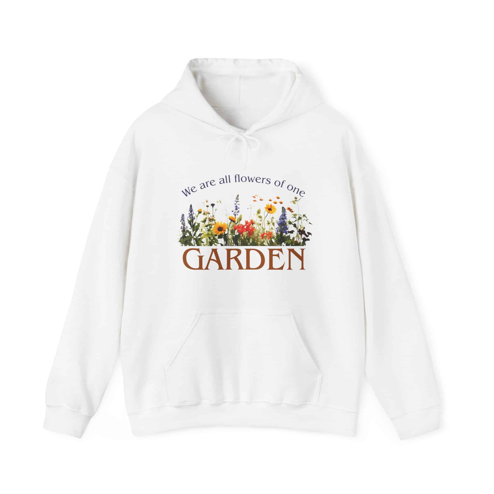 “We are all flowers of one GARDEN,” is inpired by the many Baha’i quotations that express this sentiment. Flowers of one garden, leaves of one tree, waves of one sea… you get the picture, and so will the people who see you wearing this very comfy shirt.